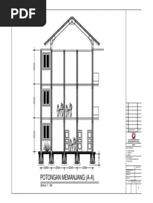 Sedangkan pagar yang mengelilingi terasnya juga terbuat dari potongan bambu namun memiliki jarak yang lebar antara satu potongan dengan lainnya. Dihalaman ini anda akan melihat gambar potongan rumah 2 lantai autocad yang apik! Bentuk mercu bendung 81 gambar 3.3.2. Plat atap lantai 2 di atas tangga. tangga darurat di luar gedung.