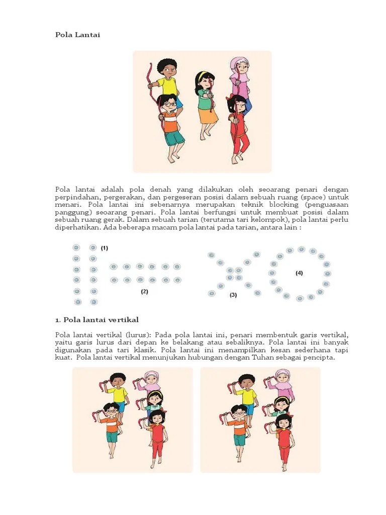 Pola lantai ini memberikan kesan yang dinamis tetapi tetap kokoh untuk para penonton atau penikmatnya. Dalam pola ini, penari bergerak membentuk garis dari kiri ke kanan dan sebaliknya. Dalam melakukan tarian ini penari harus berbaris membentuk garis lurus ke samping. 45 gambar pola lantai horizontal yang dipakai pada tari daerah 63 gambar pola lantai. Ruang pribadi gerakan penari melakukan pergerakan di tempat atau area sendiri. Pola lantai horizontal sebenarnya sama seperti pola lurus vertikal dimana pola lantai bergaris lurus. Atau bisa disimpulkan bahwa garis horizontal sama dengan garis mendatar. Beberapa tarian yang menggunakan pola lantai horizontal yaitu tari indang dari sumatera barat dan tari saman dari aceh. Hanya saja pada pola lantai horizontal, bentuk barisan dari kiri ke kanan maupun dari kanan ke kiri. May 08, 2021 · pola lantai merupakan garis yang dilalui penari pada saat melakukan gerak tari. Beberapa tarian daerah yang menggunakan pola lantai ini adalah tari serimpi dari tarian jawa tengah, tari yospan dari papua, tari pasambahan dari sumatera barat dan tari baris cengkedan dari bali. Pola lantai tari perlu diketahui dan dipelajari oleh seseorang yang ingin menguasai tarian. Dalam pola ini, penari bergerak mirip seperti pola horizontal.